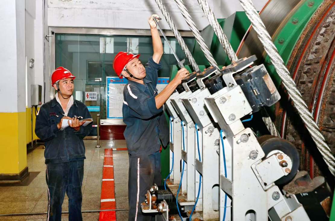 9月29日,淮北矿业集团青东矿组织开展节前隐患大排查,确保设备运行安全可靠,全力保障国庆期间安全生产。图为该矿保运一区机工队检修工对副井首绳捻距测量。(杨媛瑗 报道)