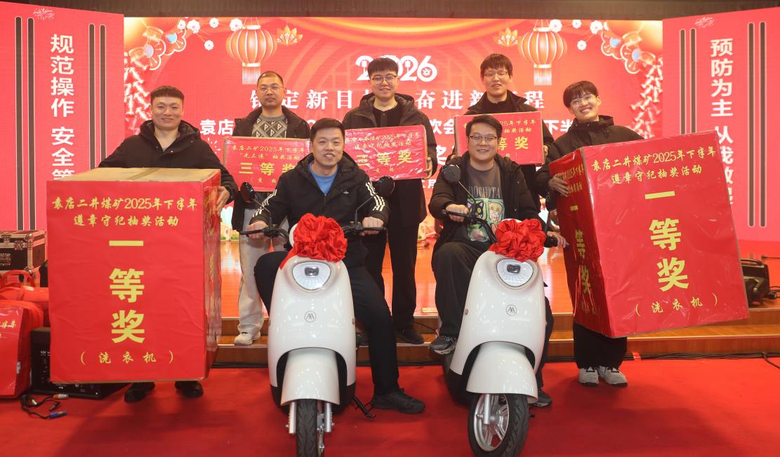 欢声笑语辞旧岁,劲舞飞扬迎新春210日,淮北矿业集团袁店矿2026年春节联欢会暨2025年下半年遵章守纪抽奖活动在农历北方小年之际精彩上演,百余名干部职工代表欢聚一堂赏文化大餐,拿安全大奖,迎马年新春。