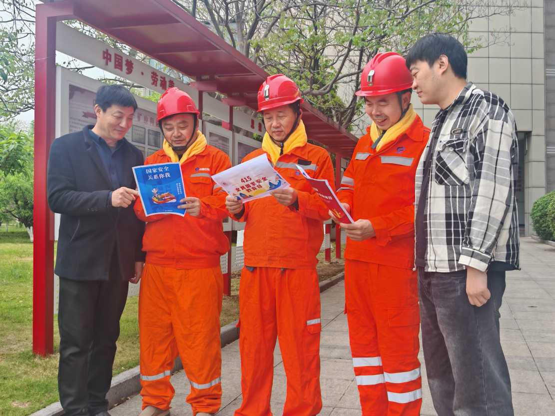 第十一个全民国家安全教育日来临之际,中煤新集公司安全监察局组织志愿者深入一线,开展国家安全主题宣讲,推动安全理念深植矿山职工心中。(作者:左德坤)