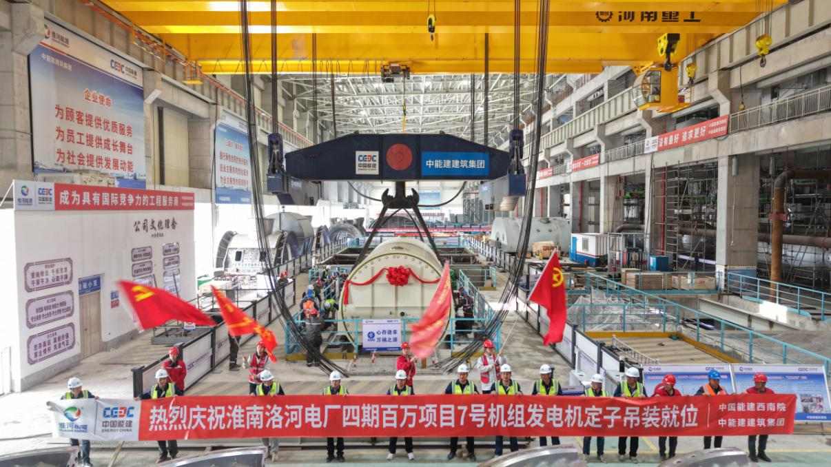 中能建建筑集团洛河百万项目 7 号机组发电机定子顺利吊装就位(闫凯林)